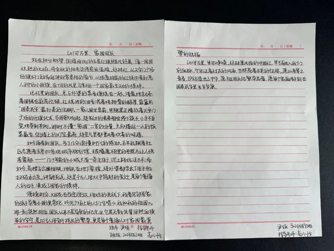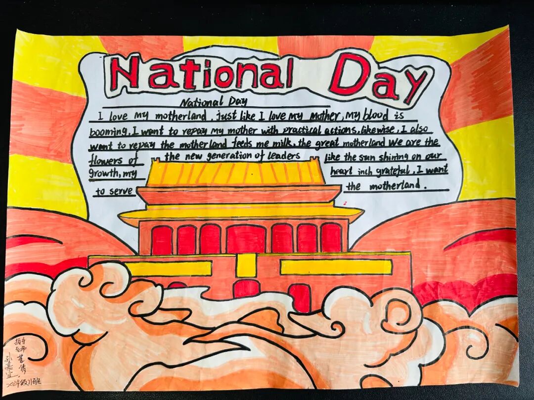 文字部分同样精彩,大家用真挚的语言抒发对祖国的热爱与祝福。“祝愿祖国繁荣昌盛,国泰民安,如那初升的朝阳,光芒万丈,在世界舞台上绽放更加耀眼的光彩!”“祖国是我们心中的灯塔,照亮前行的道路;是自信的源泉,赋予我们无穷的力量。生日快乐,我的祖国!”这些质朴而深情的话语,道出了同学们对祖国母亲深深的眷恋与祝福。